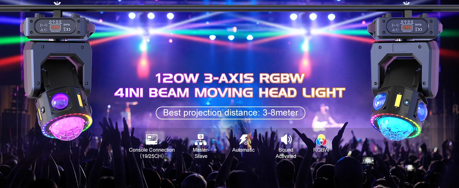 MIAX 120W RGBW Moving Head Light – 360° Beam with DMX512 Control