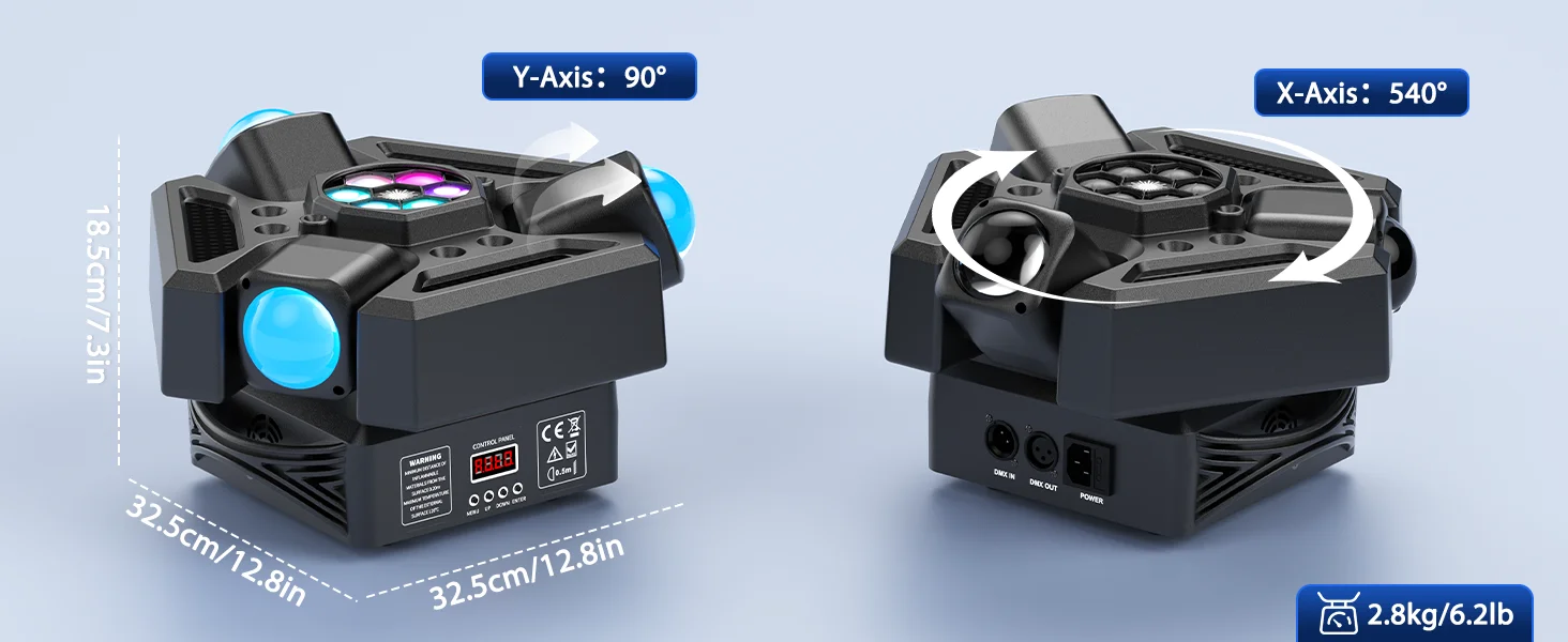 Three heads project 9 stunning beams with XY-axis flexibility, dual strobe (white/warm), and instant party-starting energy for small venues.