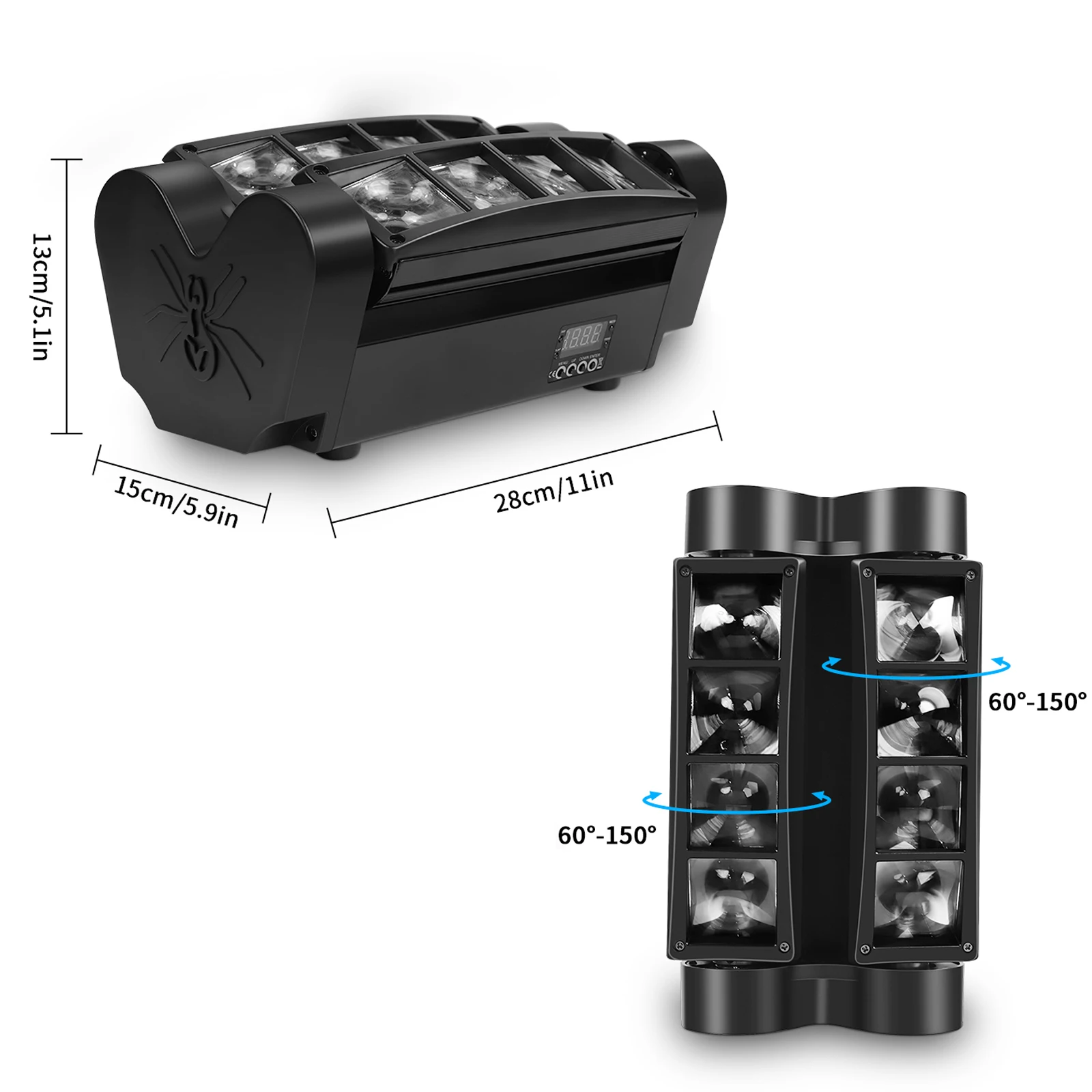 MIAX Mini Spider 8x10W RGBW Beam Light – DMX512 Moving Head (2 Pack)