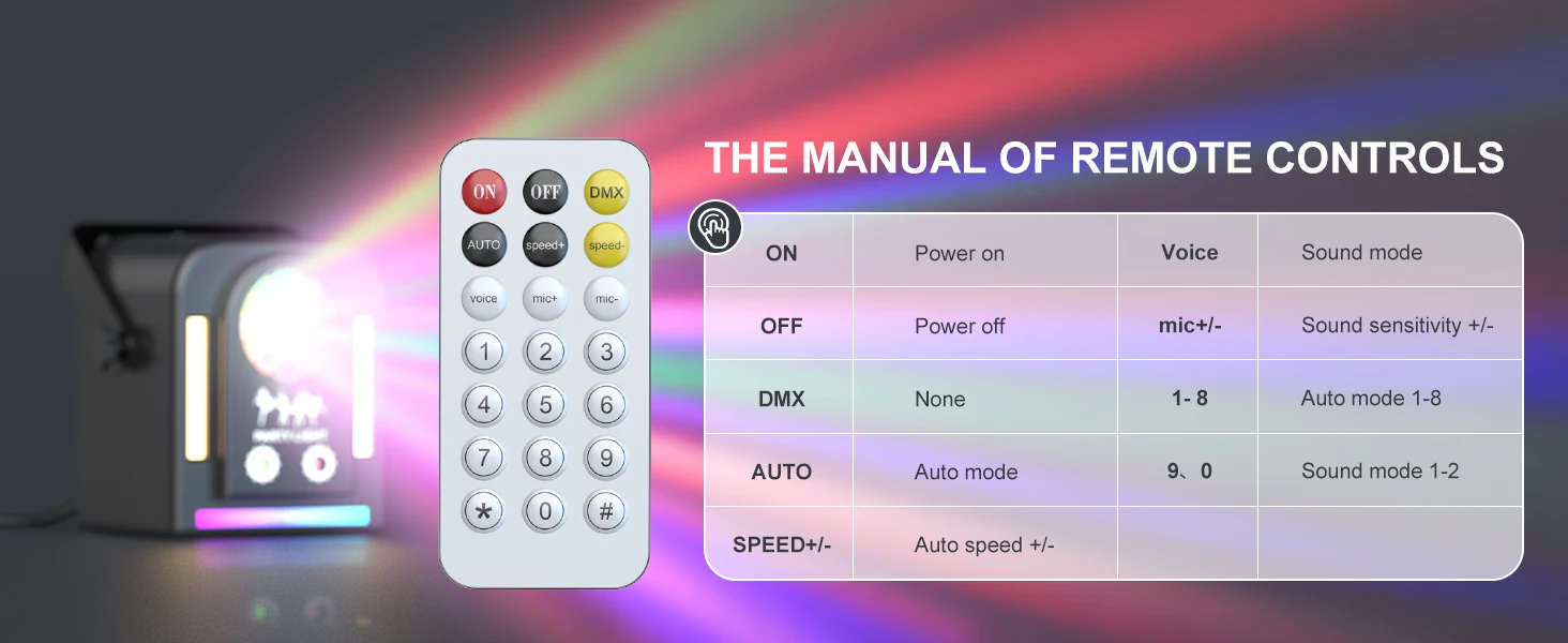 3. 【Easy Operation with Multiple Modes】The stage light offers 8 different self-propelled effect modes and a sound control mode, giving you the flexibility to choose the best option for your event.